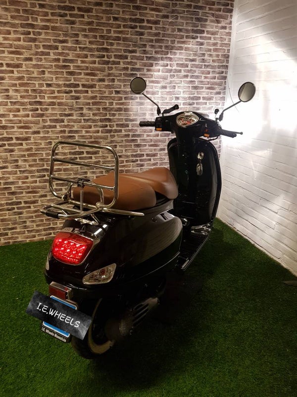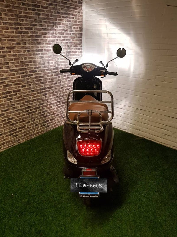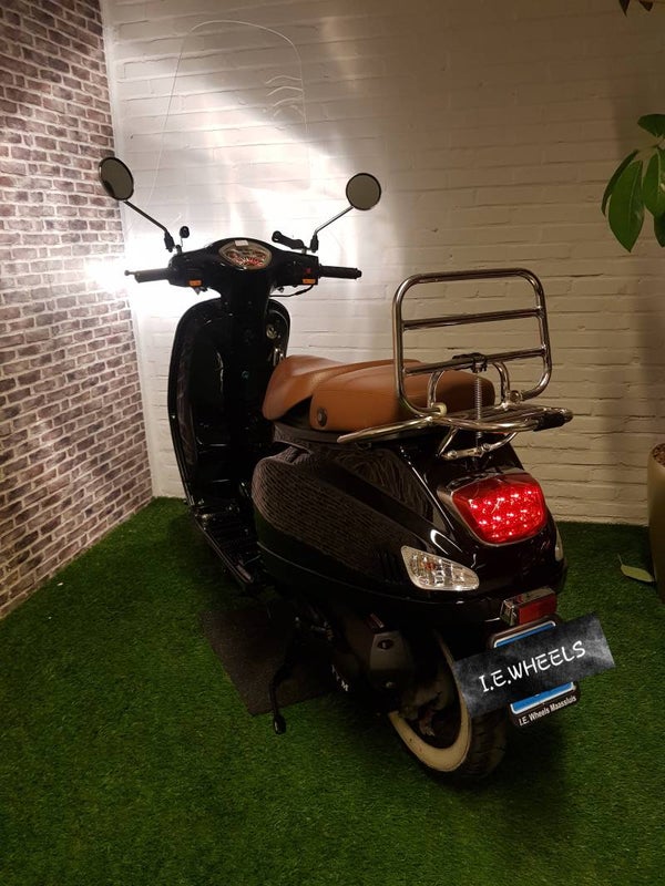 Hierbij een zeer nette TYM snorscooter vespa look 2018 met maar 3360km. Alles werkt naar behoren. Scooter is voorzien van een nieuwe hoge windscherm, whitwall banden en USB aansluiting.
