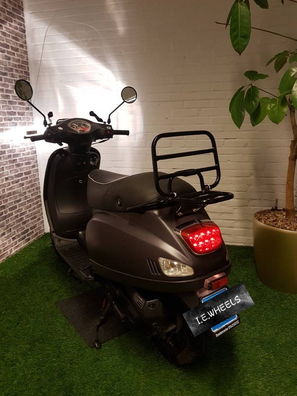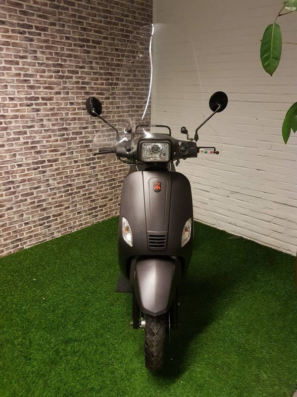 Zeer nette TYM snorscooter vespa look 2016 met maar 2550km. Alles werkt naar behoren scooter rijd zeer netjes en is voorzien van een hoge windscherm minimale gebruikers sporen.
