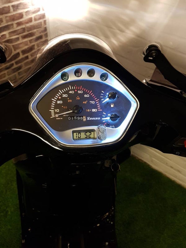 Hierbij een zeer nette Senzo Riva Lux euro4 vespa look Brommer (Helmplicht) 2018 met maar 1600km 1e eigenaar. Alles werkt naar behoren. Scooter is voorzien van een hoge smoke windscherm en USB aansluiting. Bel of bericht voor meer info.