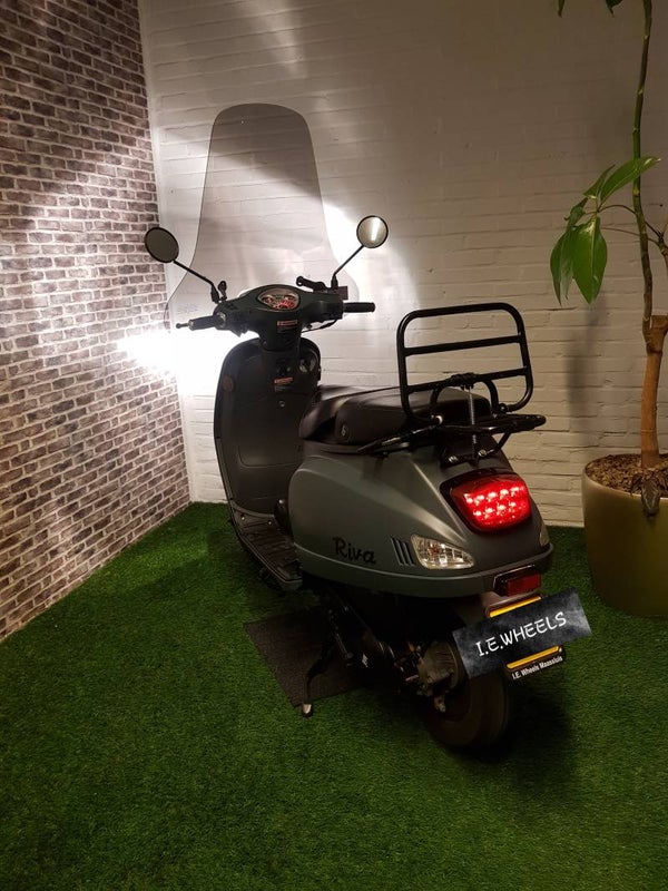 Zeer nette BTC RIVA brommer vespa look 2016 met 9800km 1e eigenaar. (Helmplicht). Alles werkt naar behoren. Scooter rijd keurig en is voorzien van een nieuwe hoge smoke windscherm ook is de olie bougi en filter vervangen. Bel of bericht voor meer info.
