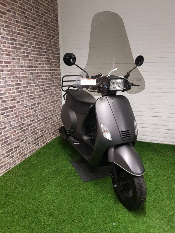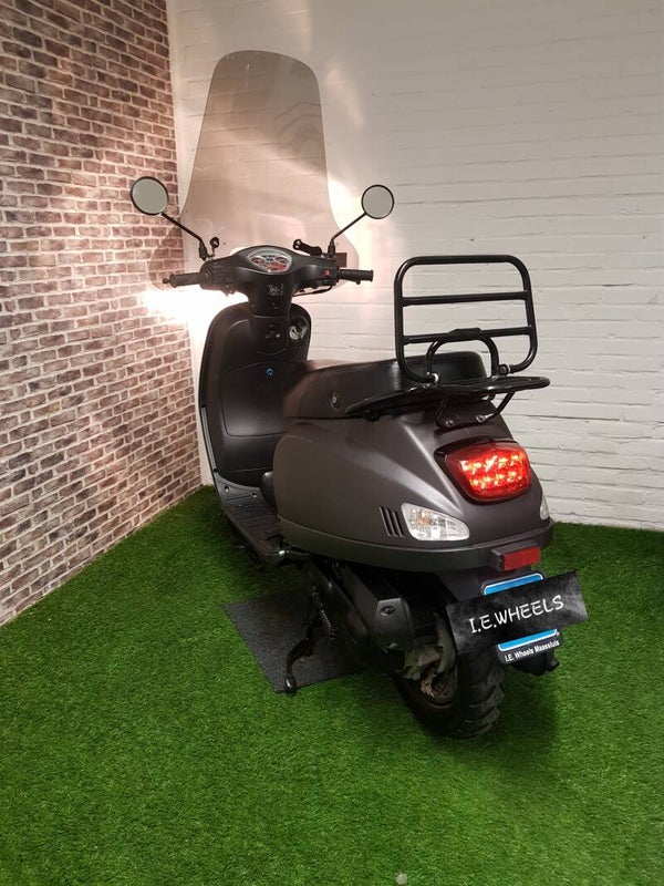 Hierbij een zeer nette Turbho snorscooter vespa look 2017 met 7400km 2e eigenaar. Alles werkt naar behoren scooter rijd keurig 35km en is voorzien van een hoge smoke windscherm en 12v usb aansluiting. Olie bougi en filter zijn vervangen. Bel of bericht voor meer info