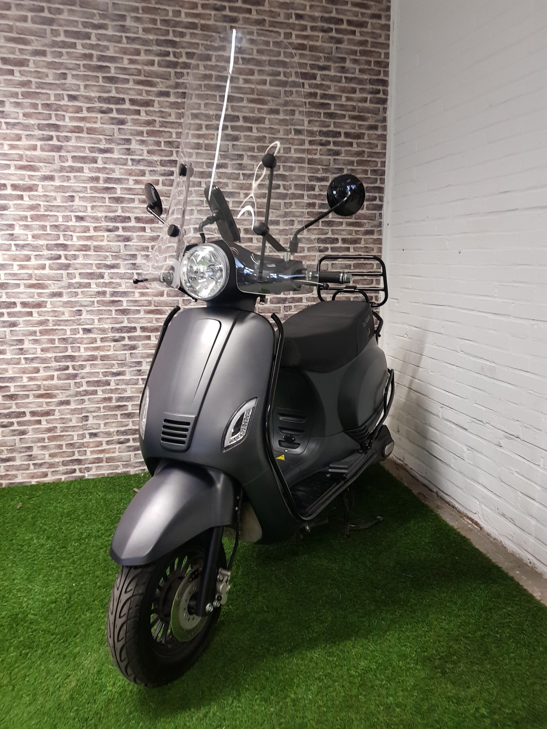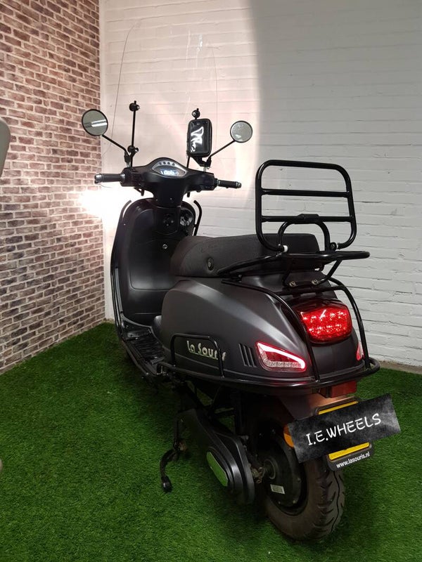 Zo goed als nieuwe electrische la souris E Sourini fulloptions Vespa look brommer 2019 met maar 2600km 1e eigenaar. Alles werkt naar behoren. Rijd zeer netjes en is omderhoud vrij. Scooter is voorzien van dubbele lithium accu. Actieradius 60km per accu. 2e reserve accu gaat ook 60 km mee. Samen 120km. Oplaad duur 4-5 uur. Ook zitten er vele options op. Zoals, hoge windscherm, val beugel set, LED verlichting, USB aansluiting, telefoon houder, Nieuw prijs 2199 kaal. Full options 2600.