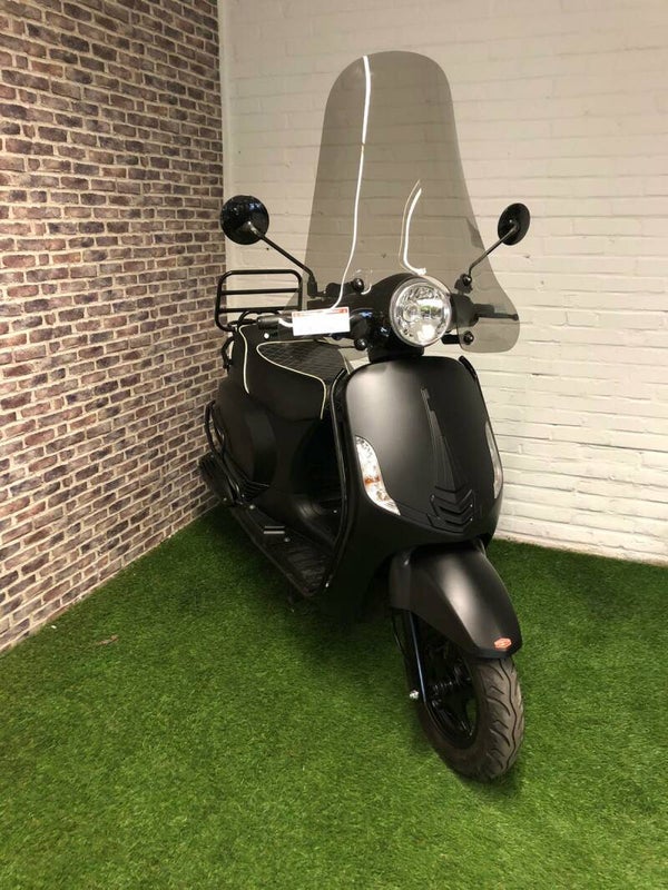 Hierbij een zeer nette Iva Lux euro4 snorscooter vespa look 2019 met 3700km 1e eigenaar. Alles werkt naar behoren. Scooter is voorzien van een hoge smoke windscherm, val beugel set en luxe zadel. Bel of bericht voor meer info
