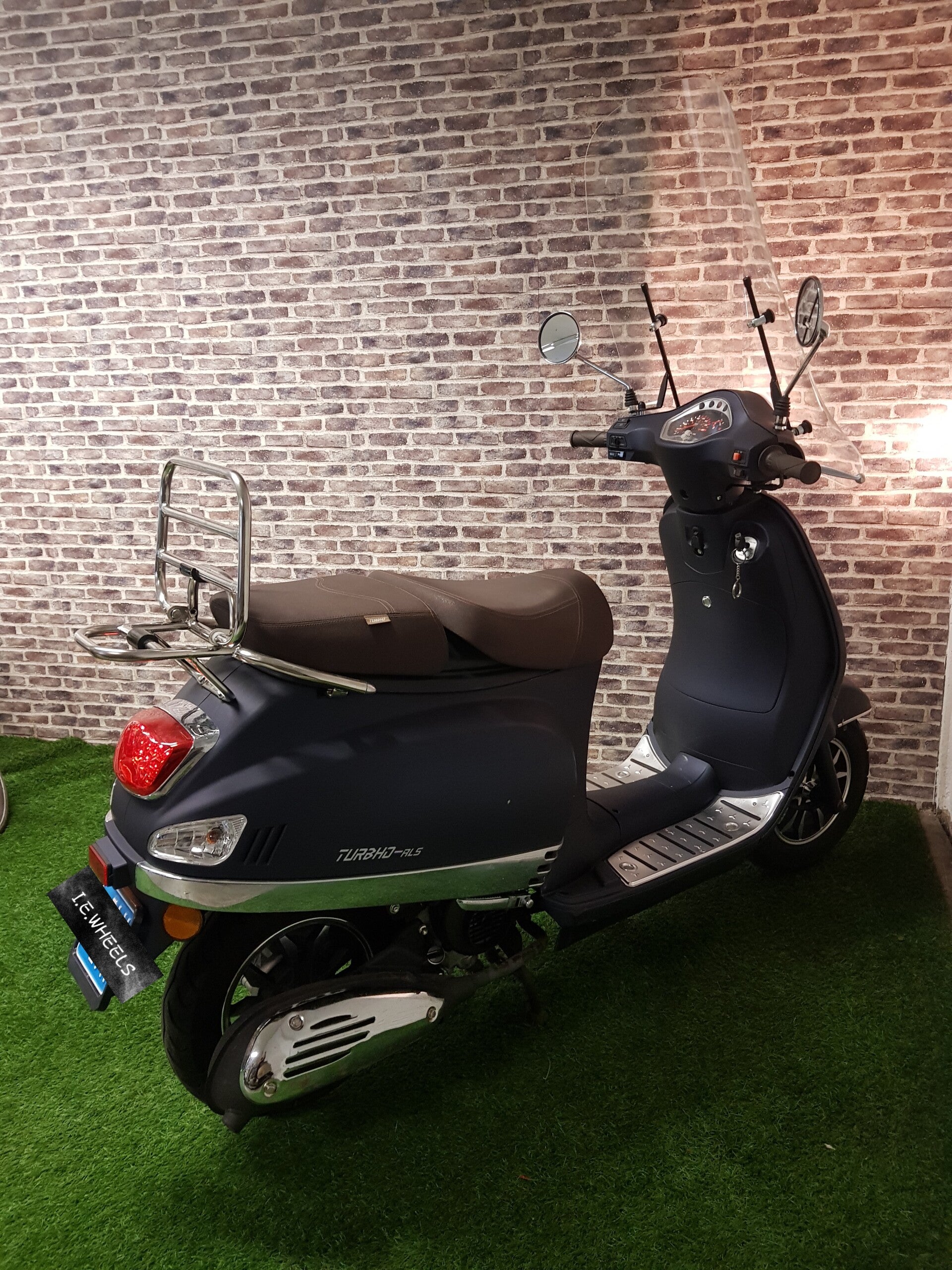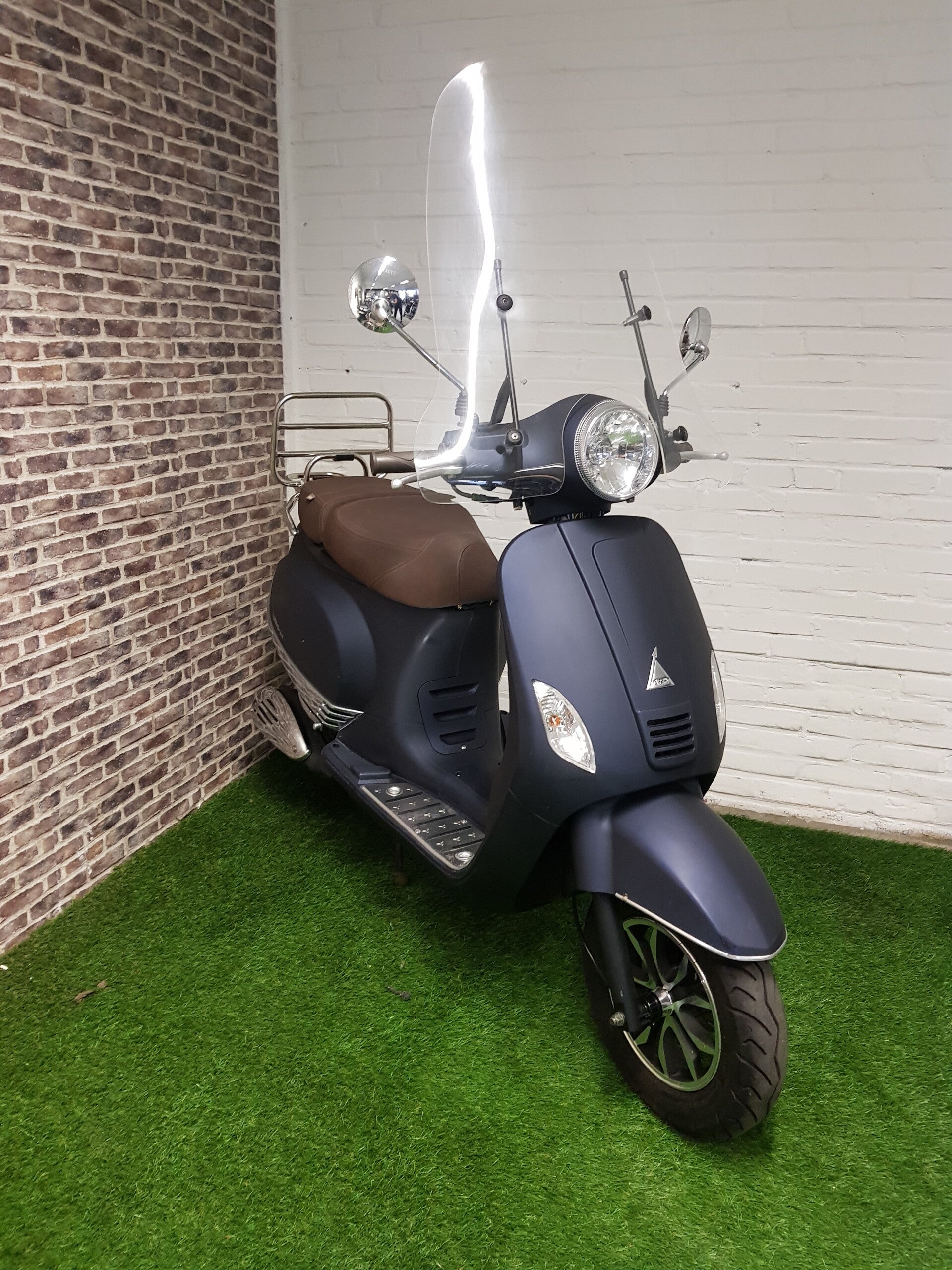 Hierbij zeer nette Turbho rl50 snorscooter vespa look 2018 met maar 730km 1e eigenaar. De scooter is zo goed als nieuw en rijd als nieuw. Ook is de scooter voorzien van een hoge windscherm, duo seat, USB aansluiting, en chrome accesware. Bel of bericht voor meer info.