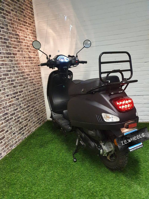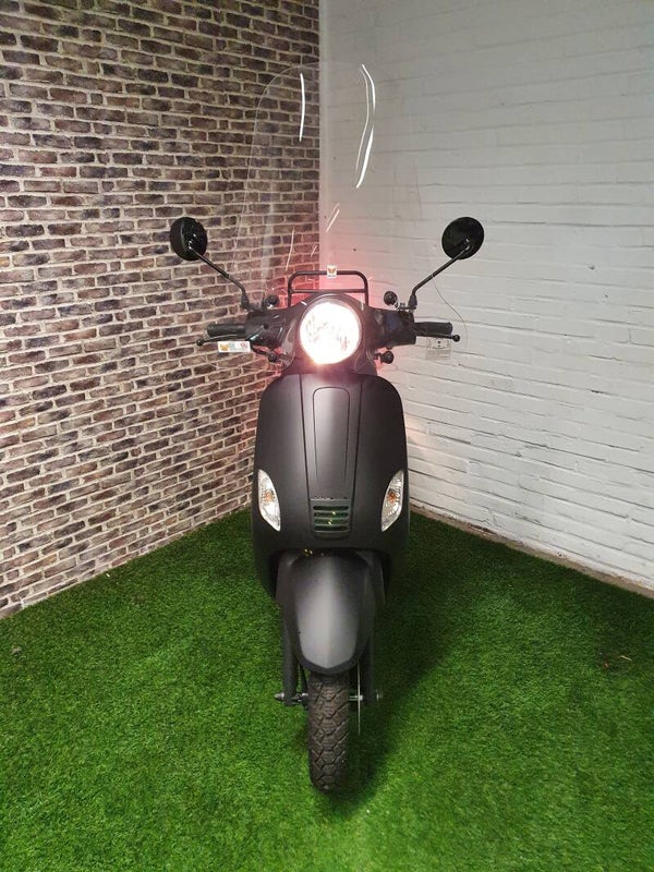 Hierbij zo goed als nieuwe Killerbee euro4 snorscooter vespa look 2020 met maar 355km. Alles wertk naar behoren. Scooter is voorzien van een hoge windscherm, luxe zadel en zijstepjes. Bel of bericht voor meer info