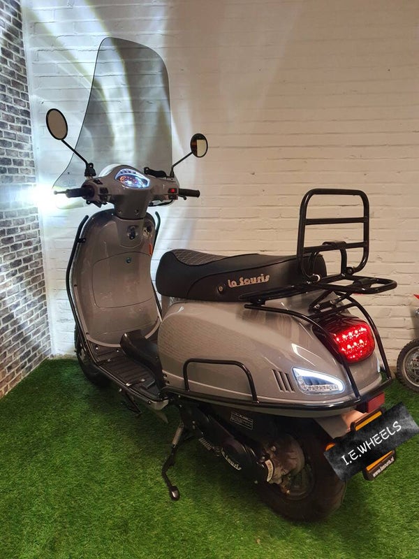 - Hierbij zo goed als nieuwe La Souris Sourini euro4 brommer (helmplicht) vespa look 2020 met maar 730km 1e eigenaar. Alles werkt naar behoren. Rijd als nieuw. Bel of bericht voor meer info.