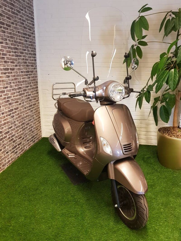 Hierbij zo goed als nieuwe la souris snorscooter vespa look 2017 met maar 1800. 1e eigenaar. Alles werk naar behoren. Scooter is voorzien van een nieuwe hoge windscherm en een nieuwe accu.