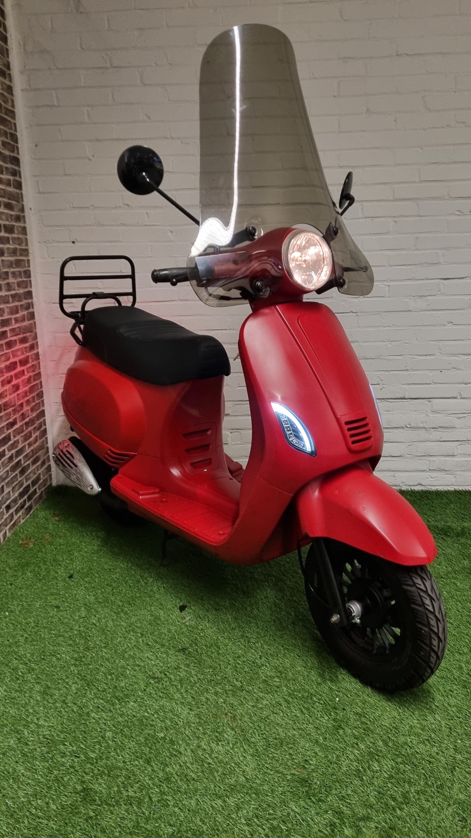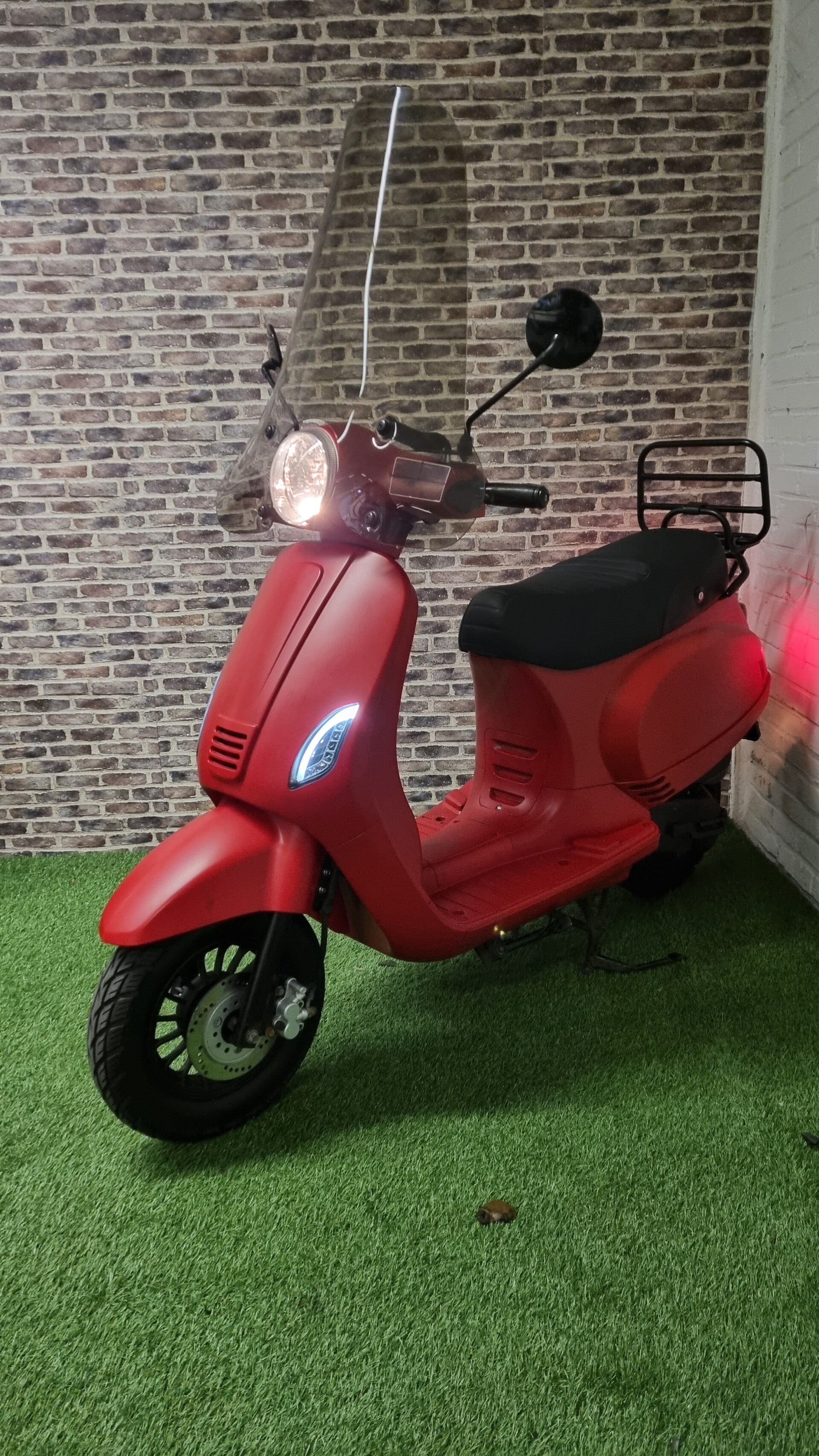 Hierbij een zeer nette AGM VX50 brommer (gele plaat) vespa look 2015 met 15366km. Alles werkt naar behoren. Scooter is voorzien van een beurt olie bougie en filter zijn vervangen. Minimale lak beschadiging op spatbord voor. Zie laaste foto.