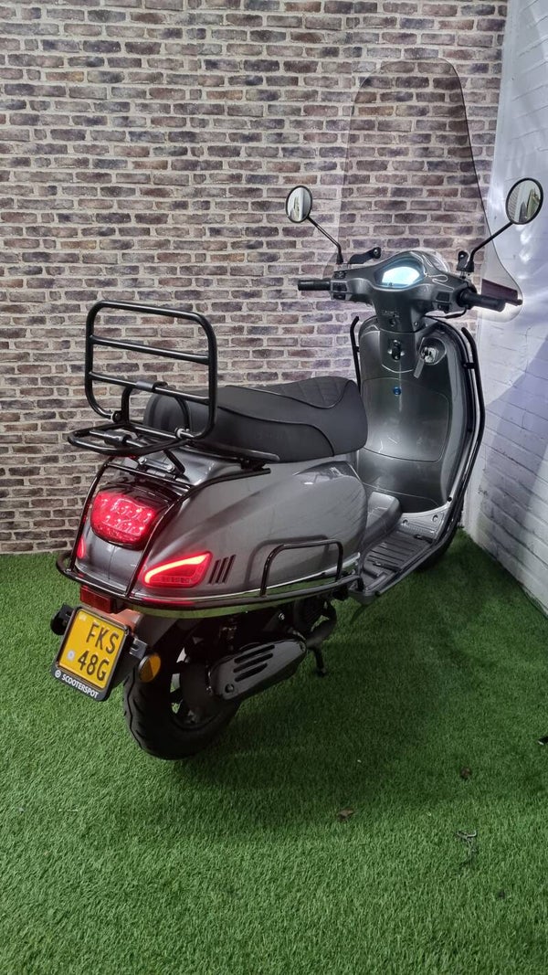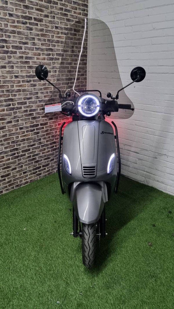 Hierbij zo goed als nieuwe. Santini Capri brommer (helmplicht) vespa look 2022 met maar 2421km. Scooter is voorzien van alle options. Rijd zo goed als nieuw. Bel of bericht voor meer info